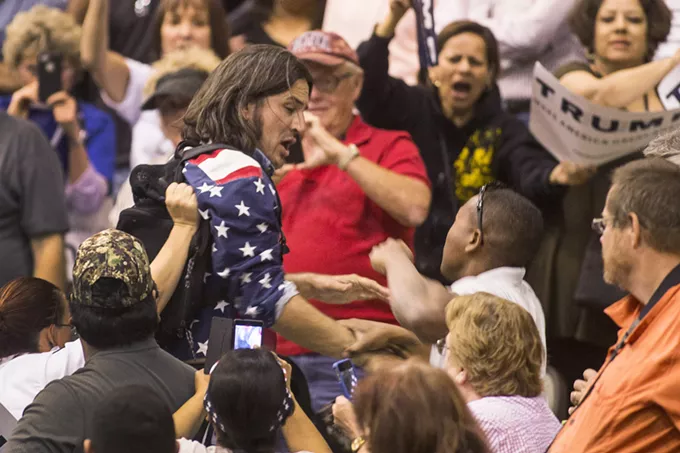 I hesitate to think – it’s a thought that comes from the darkest part of my psyche – that the place was teeming with people who wanted to beat me. Most people aren’t violent. Trump supporters are good people; This is not a me vs them thing – it’s a me vs fascism thing.