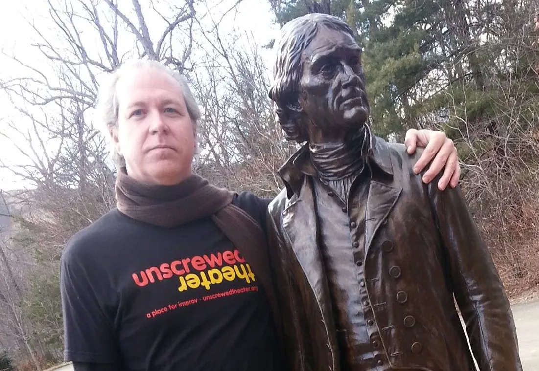 Unscrewed Theatre's Chris Seidman confers with the architect of Monticello.