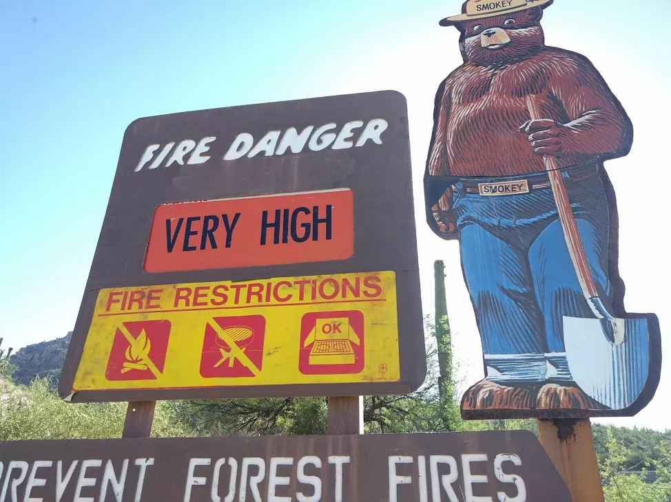 A sign on Mount Lemmon indicates that the fire danger is very high.