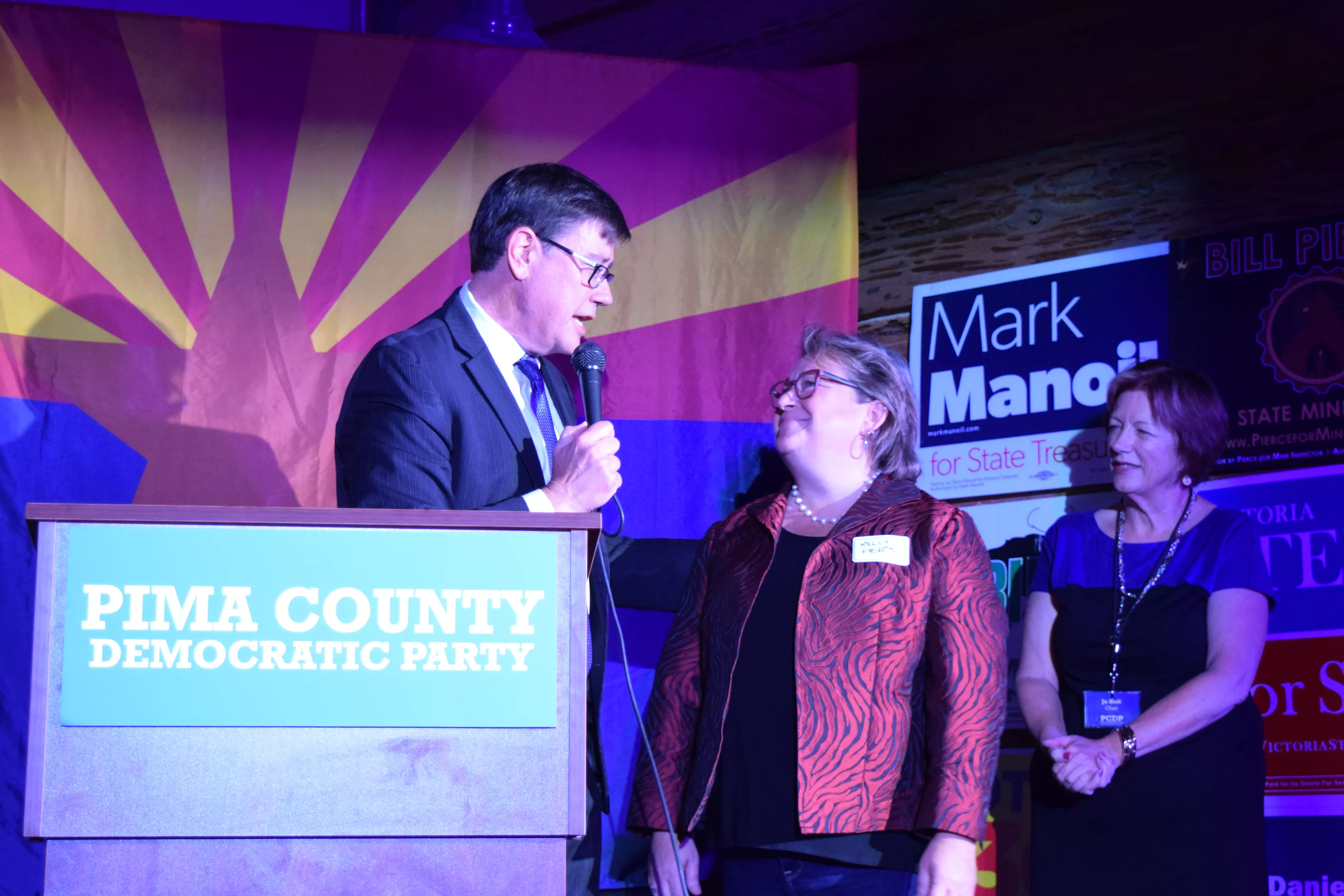 He took the stage at the Pima County Democratic Party’s election event and asked his opponent Kelly Fryer to join him the stage.