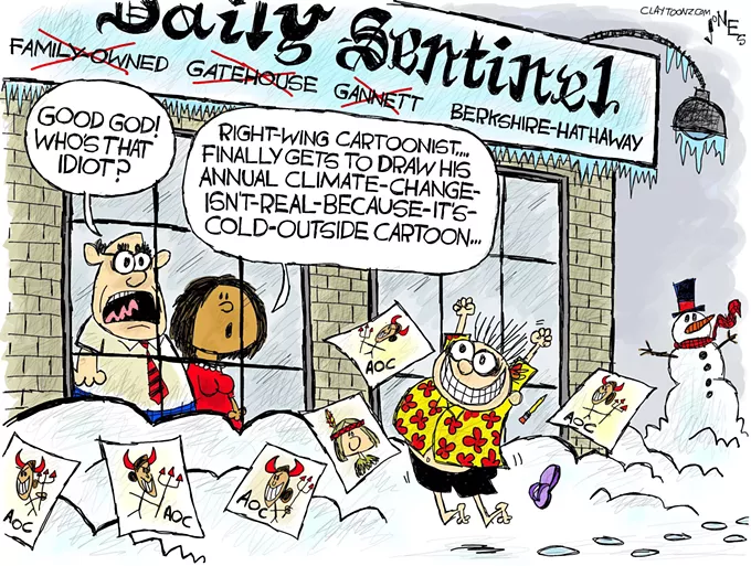 Tags: comics , politics , cartoons , Claytoons , weather , cold front , snow , global warming , climate change , snow , newspapers , cartoonist , Image