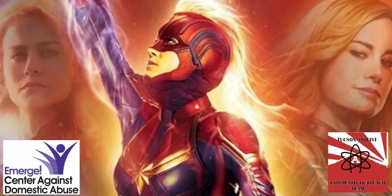 Captain Marvel. Here’s your opportunity to be a hero as well! The Tucson Atheist Community Outreach Team is hosting an event at Roadhouse Cinemas with proceeds benefiting Emerge Center Against Domestic Abuse. The TACO team invites you to “see a fun movie with a bunch of heathens and help be a hero to those who need it most.” 1:30 to 6 p.m. Saturday, March 9. 4811 East Grant Road. $25.