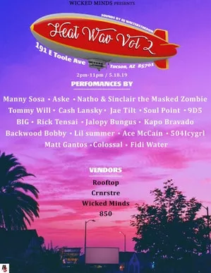 This extreme weather condition occurs when a system of high atmospheric pressure moves in and air is pulled toward the ground rapidly increasing in temperature. Heat Wave Vol. 2 features Manny Sosa, Aske, Natho & Sinclair the Masked Zombie, Tommy Will, Cash Lansky, Jae Tilt and more. At 191 Toole.