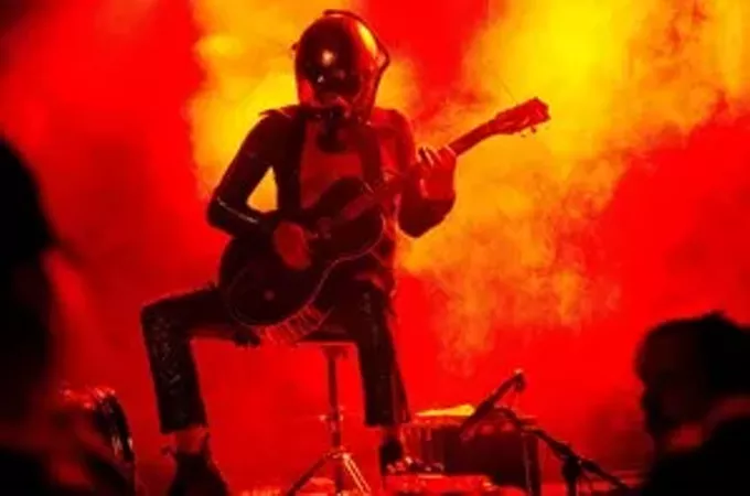Brace yourselves for a mind-blowing set of finger-picked, steel-string blues and heavy rock played by a wild man in a human-cannonball jumpsuit and full-face racing helmet rigged with a telephone receiver as a mic.