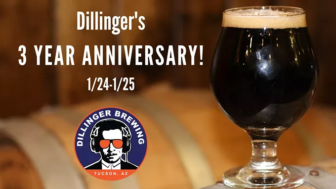 Dillinger Brewing: Beer Releases & Three-Year Anniversary. It’s a big weekend over at Dillinger Brewing Company, where they’re busting out cans of a spacey brew and celebrating their birthday. On Friday, they’re releasing their “Osiris-REx Recon” cans in celebration of the Recon phase of NASA’s OSIRIS REx mission headquartered at the University of Arizona. The Recon is an IPA that is “generously hopped” with Galaxy and Comet hops, reaching a nice 7.1 percent ABV and 65 IBUs. They’re also releasing a special Lemon Rosemary Sour brew made in collaboration with Tucson Hop Shop, and also releasing a new Barrel-aged Wild Ale. On Saturday, they will be hosting live art and music performances, plus breaking out some special bottles from the cellar and experimenting with dessert pairings for their Chocolate Cherry Stout. And all this right around Dillinger Days, no less! Friday, Jan. 24, and Saturday, Jan. 25. 3895 N. Oracle Road.