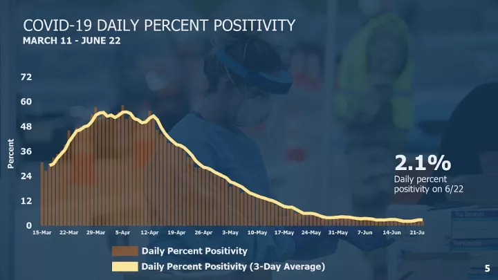 image tweeted Thursday by New Jersey Gov. Phil Murphy shows the shape of the curve of positive tests. At one point, one in every two tests came back positive for the coronavirus.