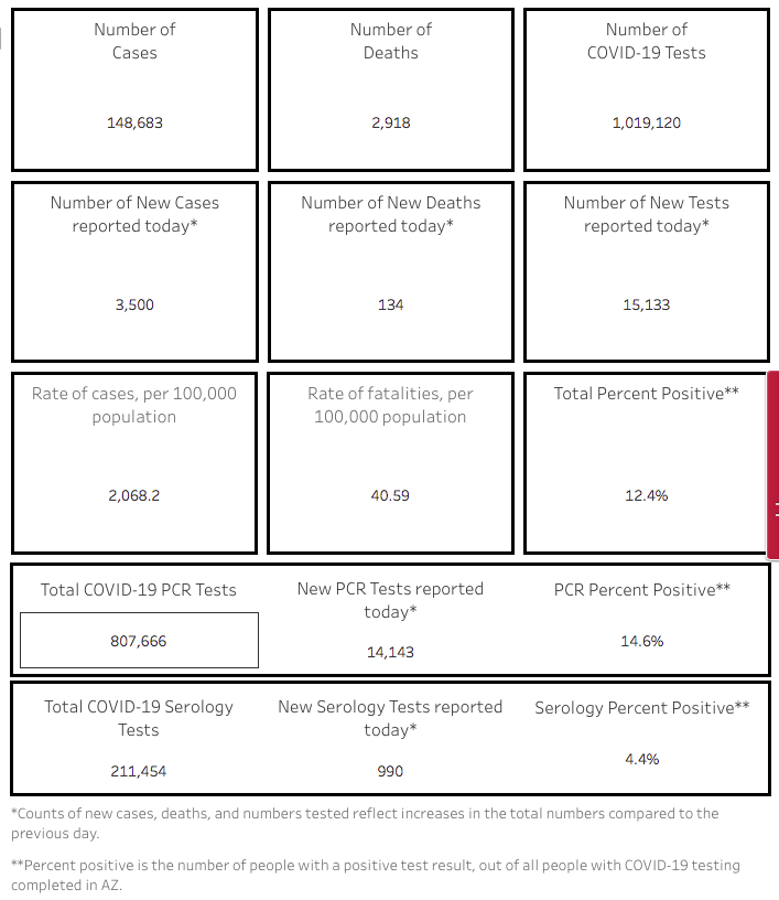 The total number of confirmed coronavirus cases in Arizona climbed past 148,000 as of Tuesday, July 21, after the state reported 3,500 new cases this morning, according to the Arizona Department of Health Services.