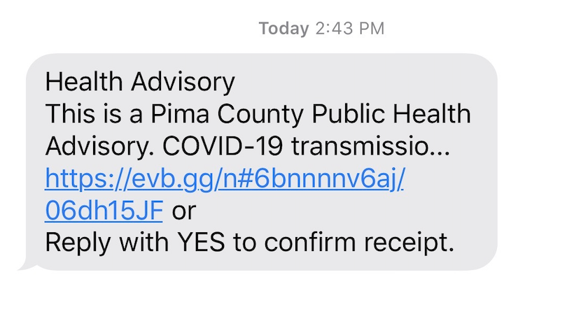 The Pima County Health Department distributed a mass alert Wednesday informing the public of its renewed public health advisory as COVID-19 cases reach alarming levels.