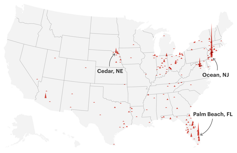 But that CPA’s data breach didn’t account for all of the suspicious loans ProPublica found across the country. Searches for PPP applicants that didn’t show up in state registration records yielded hundreds in 28 more states, with dense clusters in Florida, Nebraska and Virginia. Other lenders had nonexistent businesses as well, but fake farms only showed up in Kabbage loans. Most followed a distinctive naming convention, with part of the name of a resident or former resident of the home to which the business is registered, plus a random agricultural term.