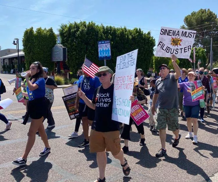 On Monday, Barber and other civil rights leaders led a march and nonviolent sit-in at Sinema’s office in central Phoenix to demand an end to the filibuster, which allows the minority party to block legislation from advancing in the Senate, passage of voting and workers’ rights legislation and raising the federal minimum wage to $15 an hour.