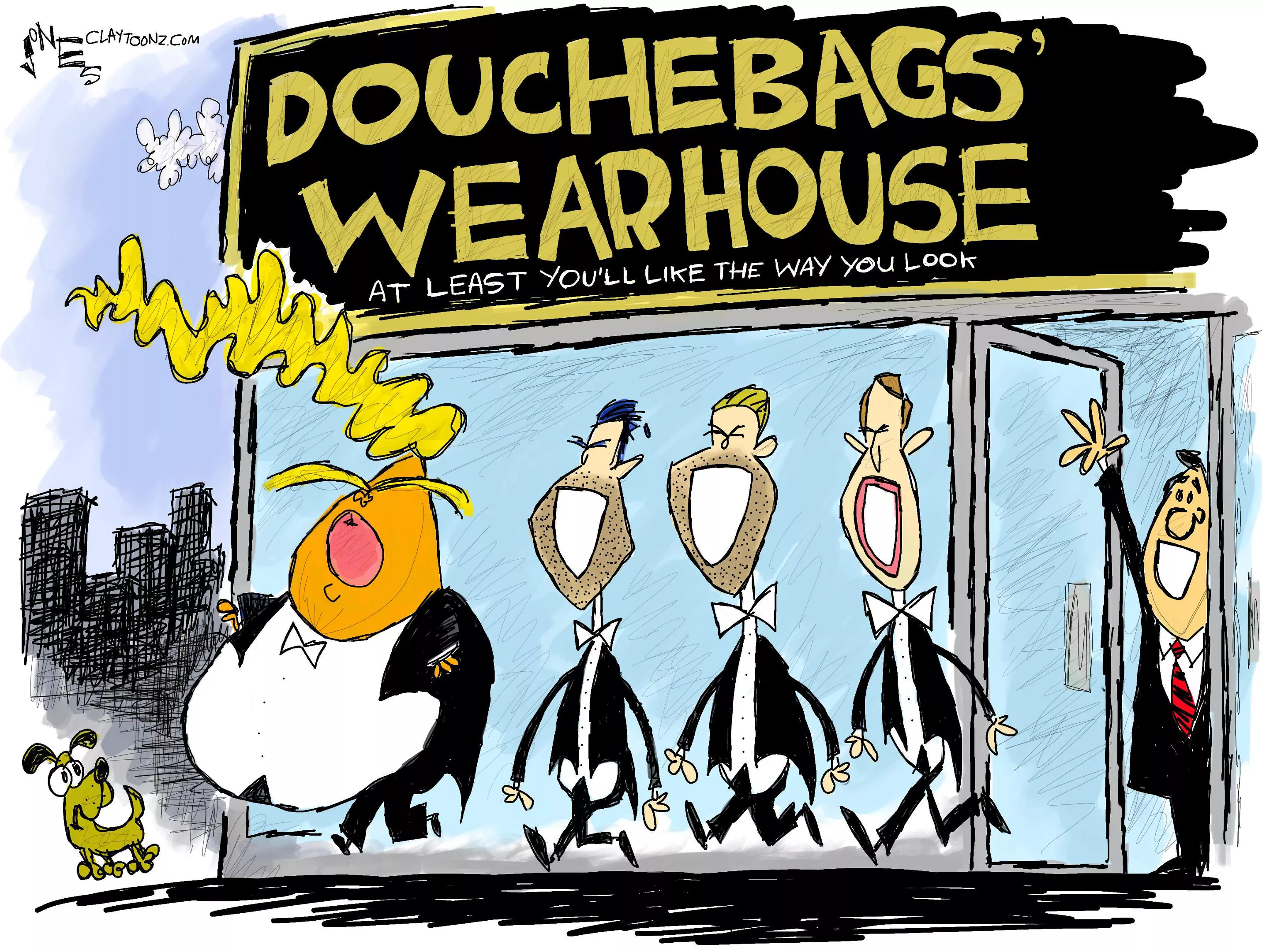 Tags: comics , politics , cartoons , Claytoonz , Trump , suit , tux , outfit , Image