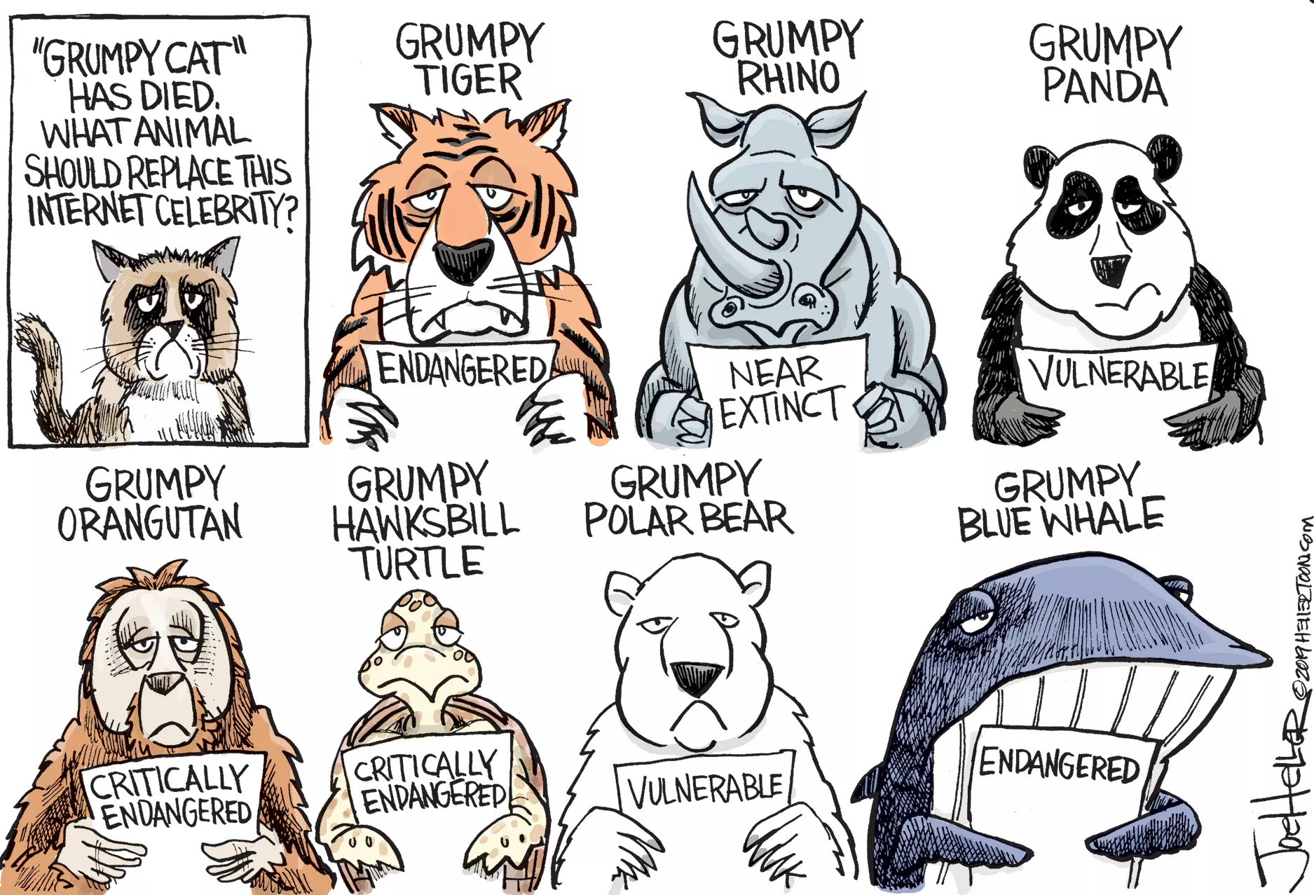 Tags: comics , politics , cartoons , Joe Heller , Grumpy Cat , replacement , endangered animals , wildlife , Image