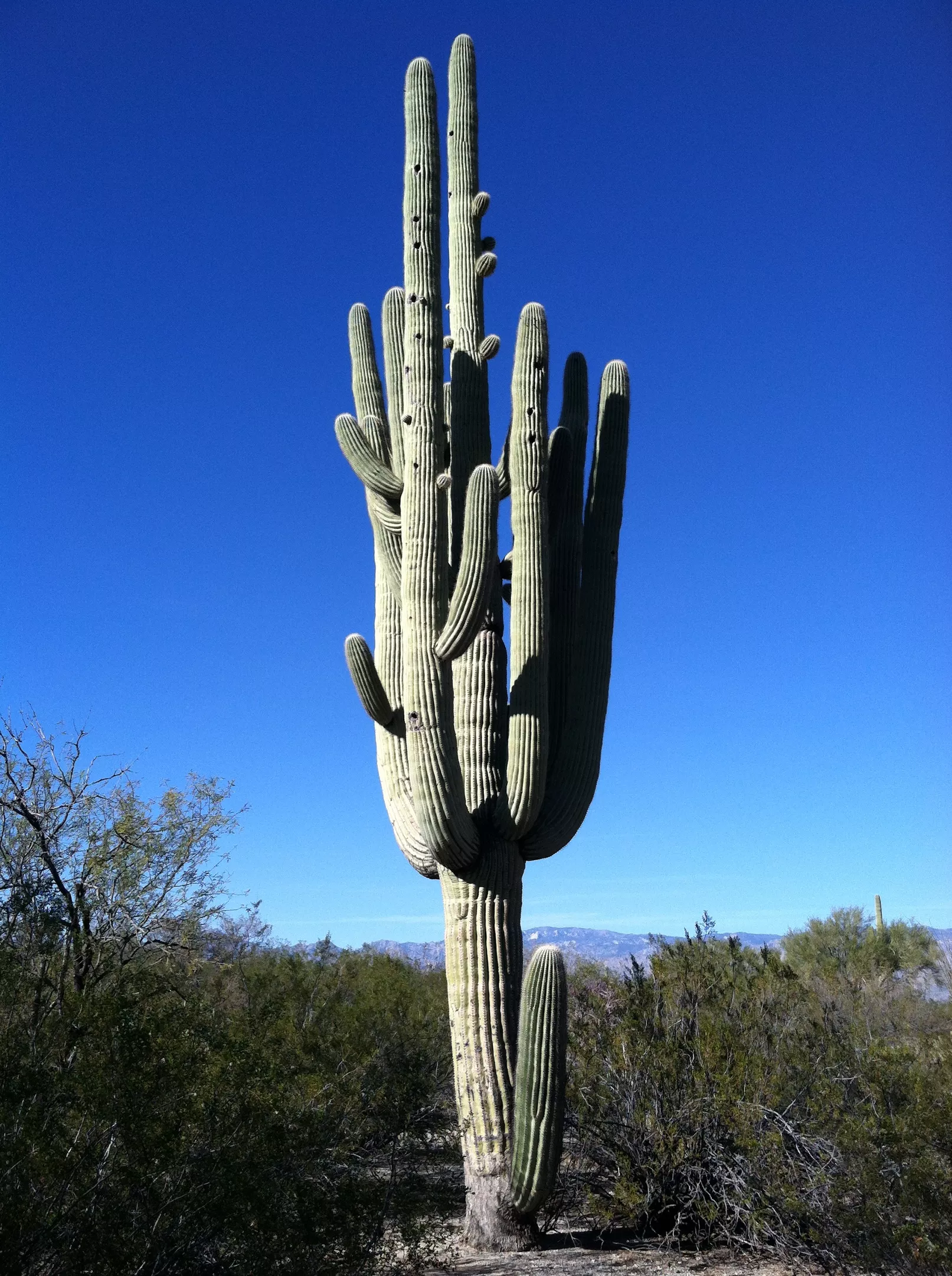 This is, literally, the biggest saguaro I've ever seen. My friend Tim is over 6 feet tall and the top of his hat reaches the top of the arm on the bottom. Saguaro Park east.