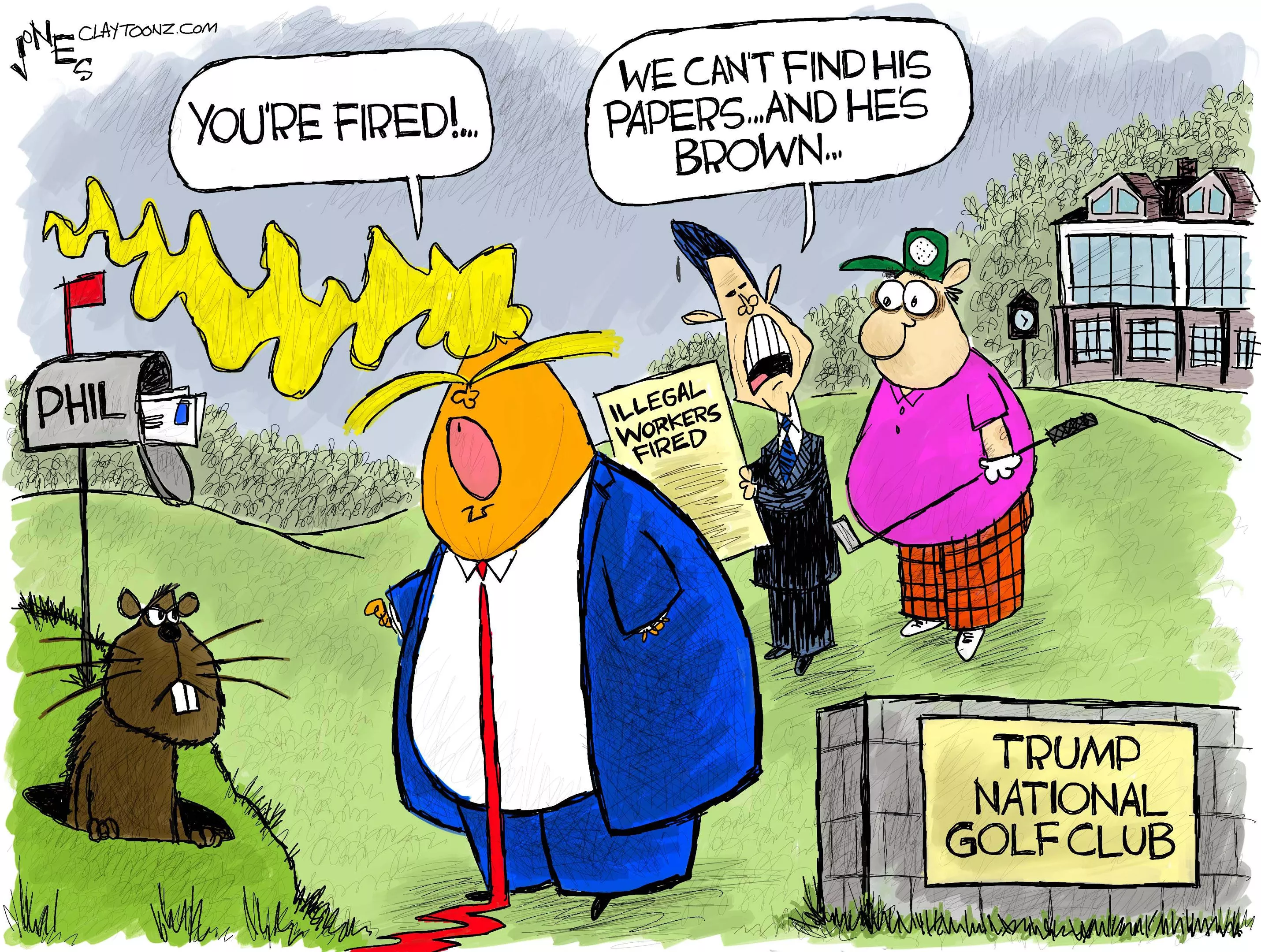 Tags: comics , cartoons , Claytoonz , politics , groundhog day , Trump , golf course , workers , Image