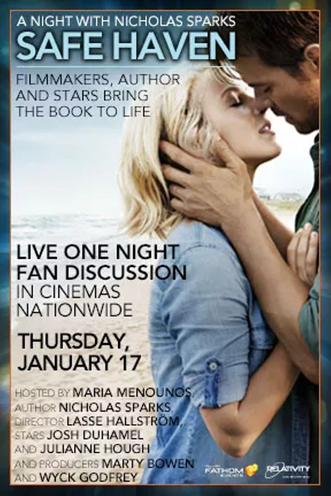 A Night With Nicholas Sparks' Safe Haven: Filmmakers, Author and Stars Live is not showing in any theaters in the area.
