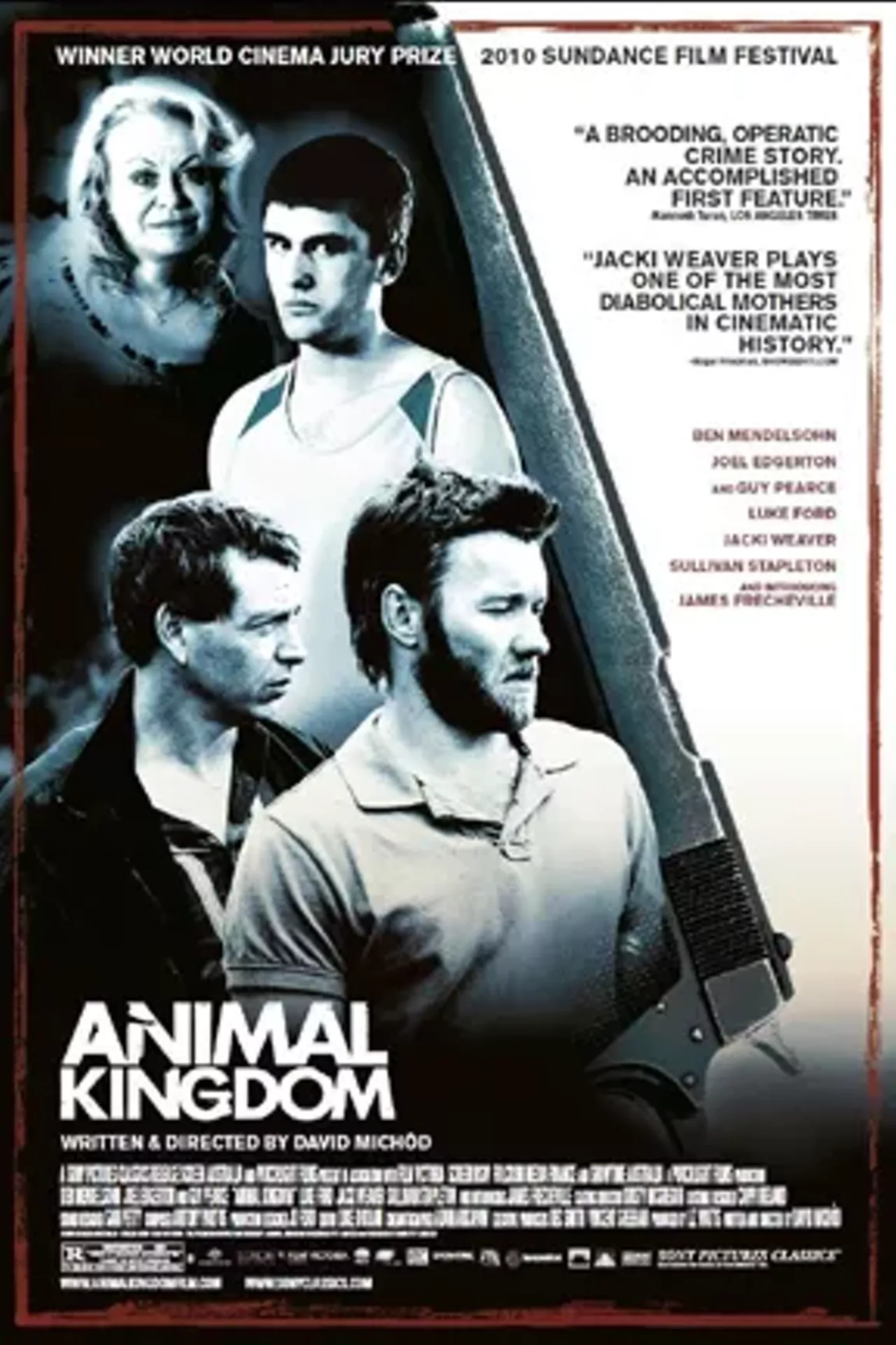 This is a movie about gangsters who, on top of being terrible people, are tremendously boring. You’ll hate virtually every character, which, I guess, is the point. Animal Kingdom succeeds at not glamorizing crime, though in the process, it has some dull stretches, and features a completely uninteresting protagonist. James Frecheville stars as Josh, a 17-year-old who, at the start of the film, is watching a television game show while his mom dies next to him. He then goes on to watch TV at his grandmother’s house while his three uncles kill people and steal stuff—but mostly, they sit around watching TV or playing video games or eating food. Things become more interesting in the second half, when Grandma, who’s been the only character with human emotions, shows where her sympathy lies; violence, swearing and Australian cuisine figure prominently, and make up for the slow first half. This film is not great, but it’s more morally responsible than movies that glamorize crime, like Scarface, The Godfather or Pretending to Be a Devout Christian So You Can Go to Congress and Give Tax Refunds to the Very Wealthy.