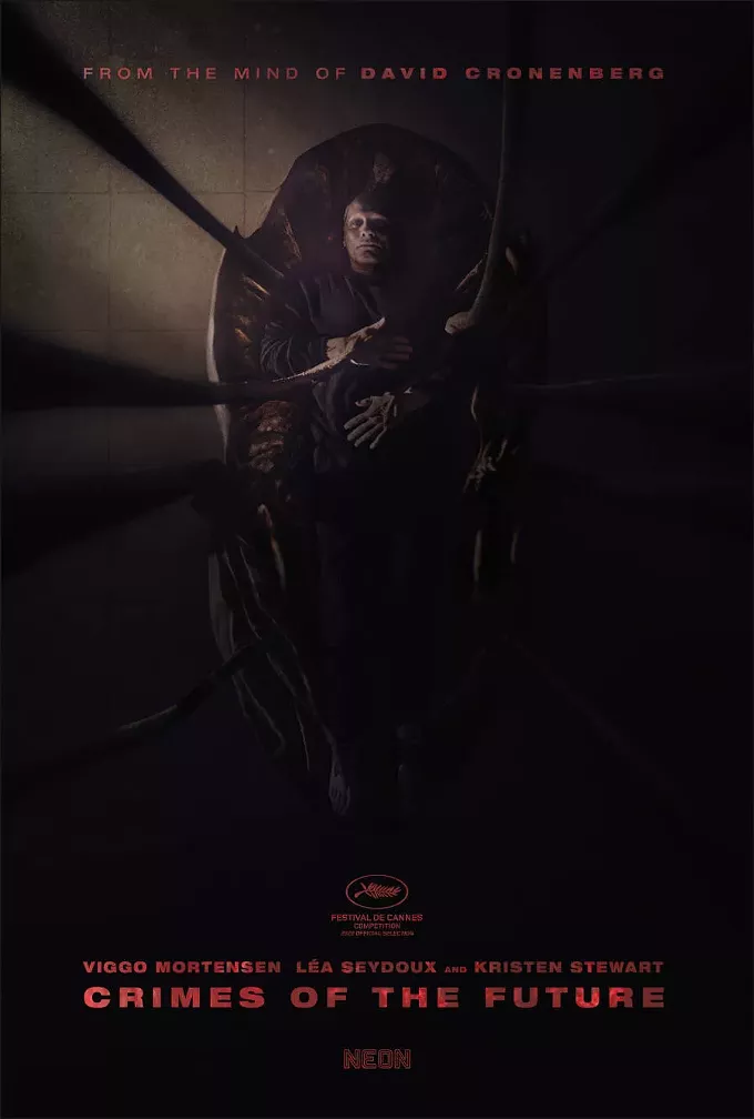 As the human species adapts to a synthetic environment, the body undergoes new transformations and mutations. With his partner Caprice (Léa Seydoux), Saul Tenser (Viggo Mortensen), celebrity performance artist, publicly showcases the metamorphosis of his organs in avant-garde performances. Timlin (Kristen Stewart), an investigator from the National Organ Registry, obsessively tracks their movements, which is when a mysterious group is revealed… Their mission – to use Saul’s notoriety to shed light on the next phase