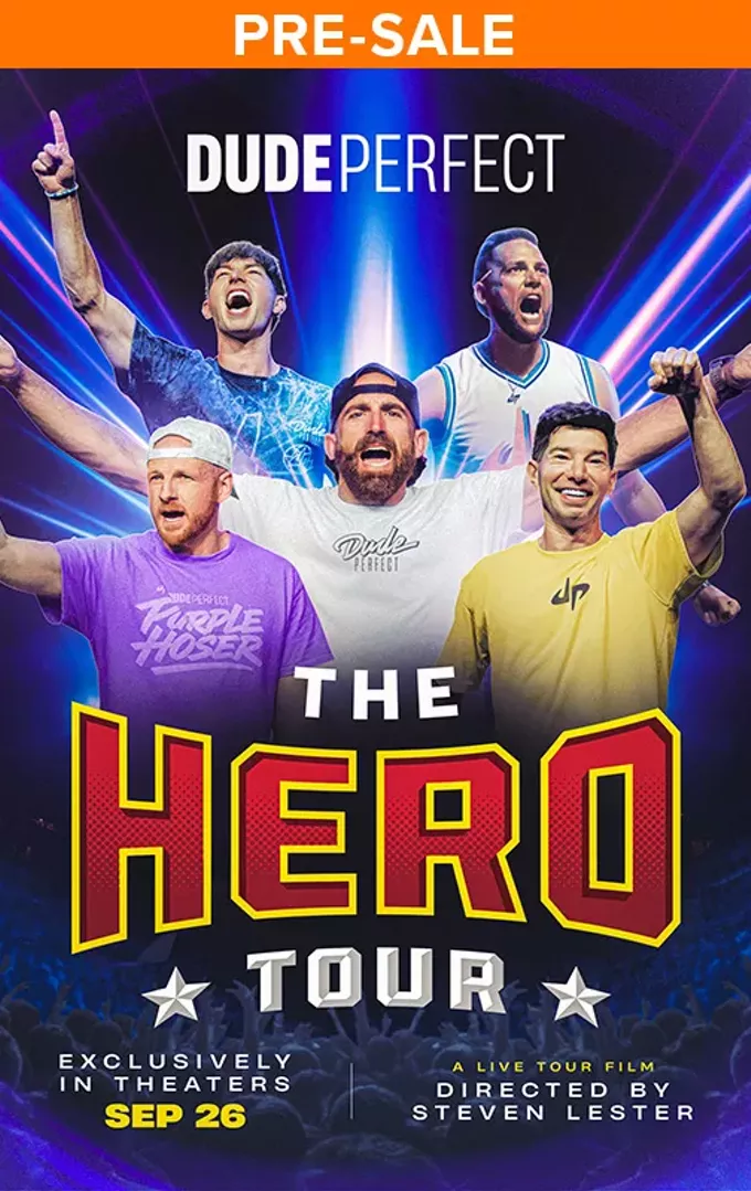 Dude Perfect: The Hero Tour is a brand-new, immersive experience designed for families and superfans to see The Dudes up close like never before. Be a part of the Dudes’ sold-out Hero Tour with the best seat in the house in the first-ever cinematic look. The show is full of action-packed battles, classic Dude Perfect segments, and exclusive backstage access. Even if you have been to the show, you've never seen Dude Perfect like this!