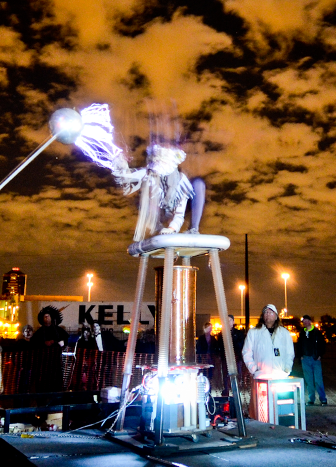 Visitors create their own phantasmagoria by stepping into a Faraday cage that sits on a Tesla Coil. They shoot lightning from their fingers and view the world from inside their own electrical storm from 6 to 8 p.m., Saturday, Dec. 3; free admission, $5 to be the center of the storm. Call 323-1331, or find Electrical Storm on the Moon on Facebook for more information.