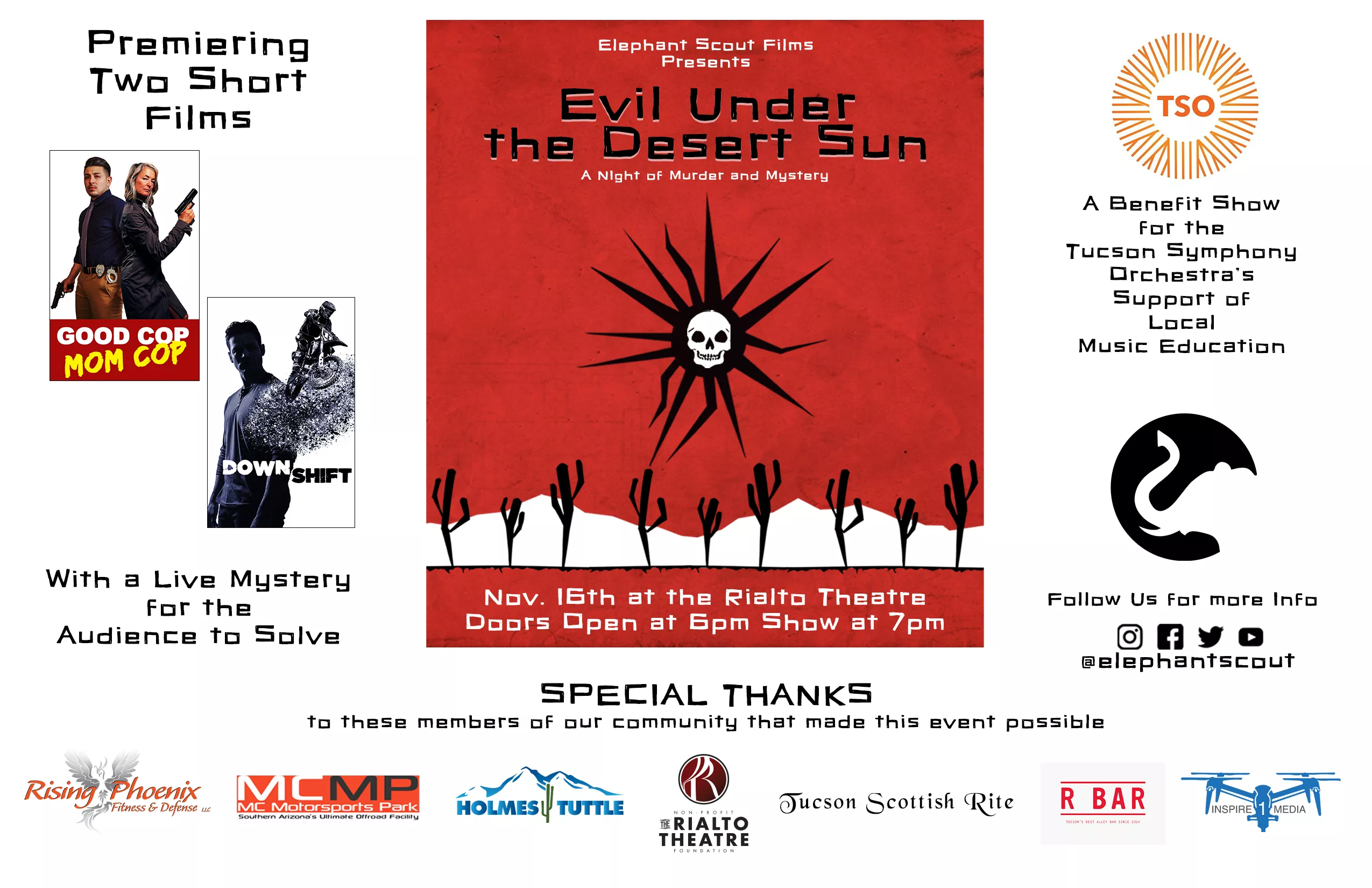 Evil Under of the Desert Sun is a night of murder mystery short films and a live mystery for the audience to solve.