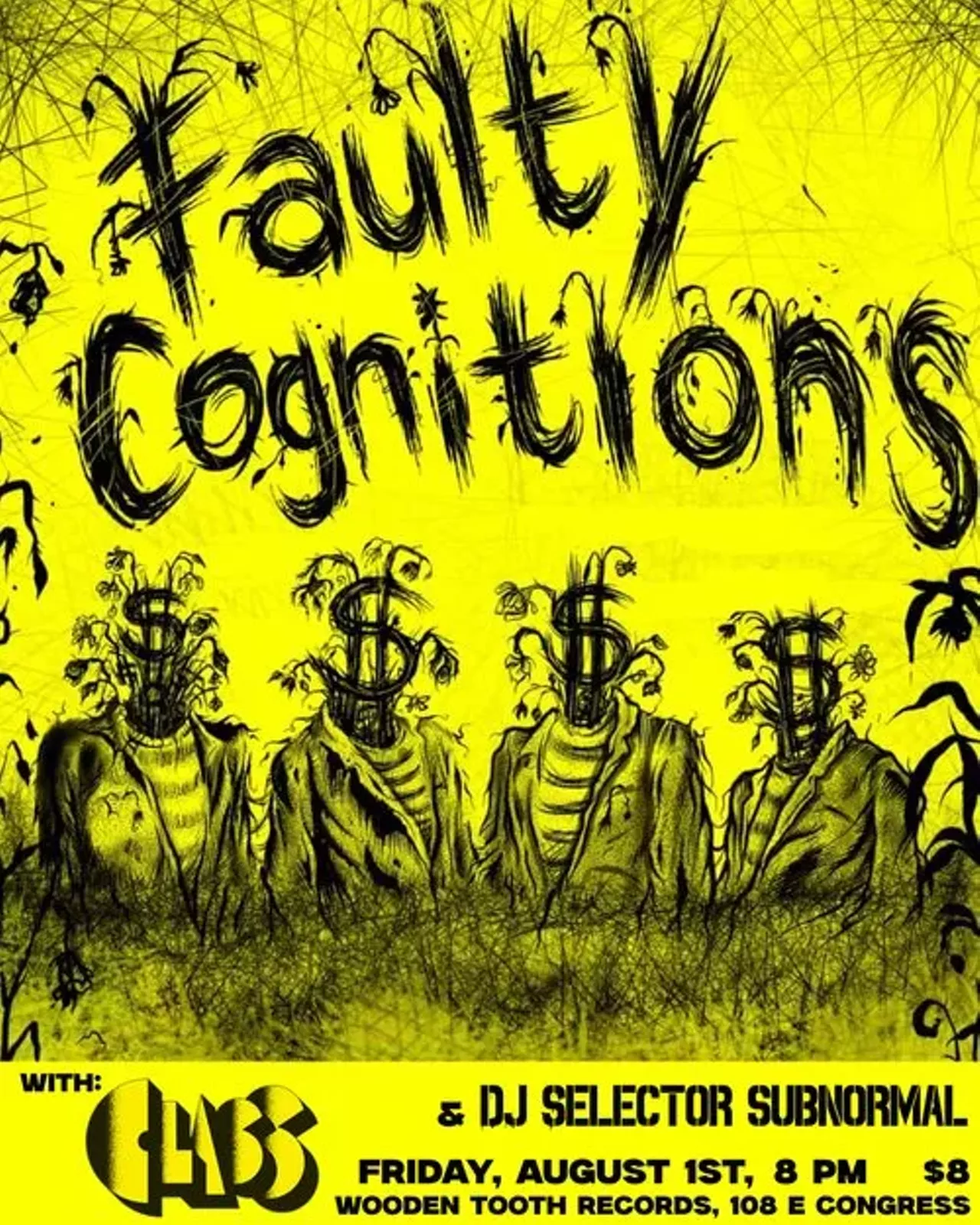 San Antonio punk band Faulty Cognitions take the stage with local band Class and DJ Selector Subnormal spinning punk records between sets.