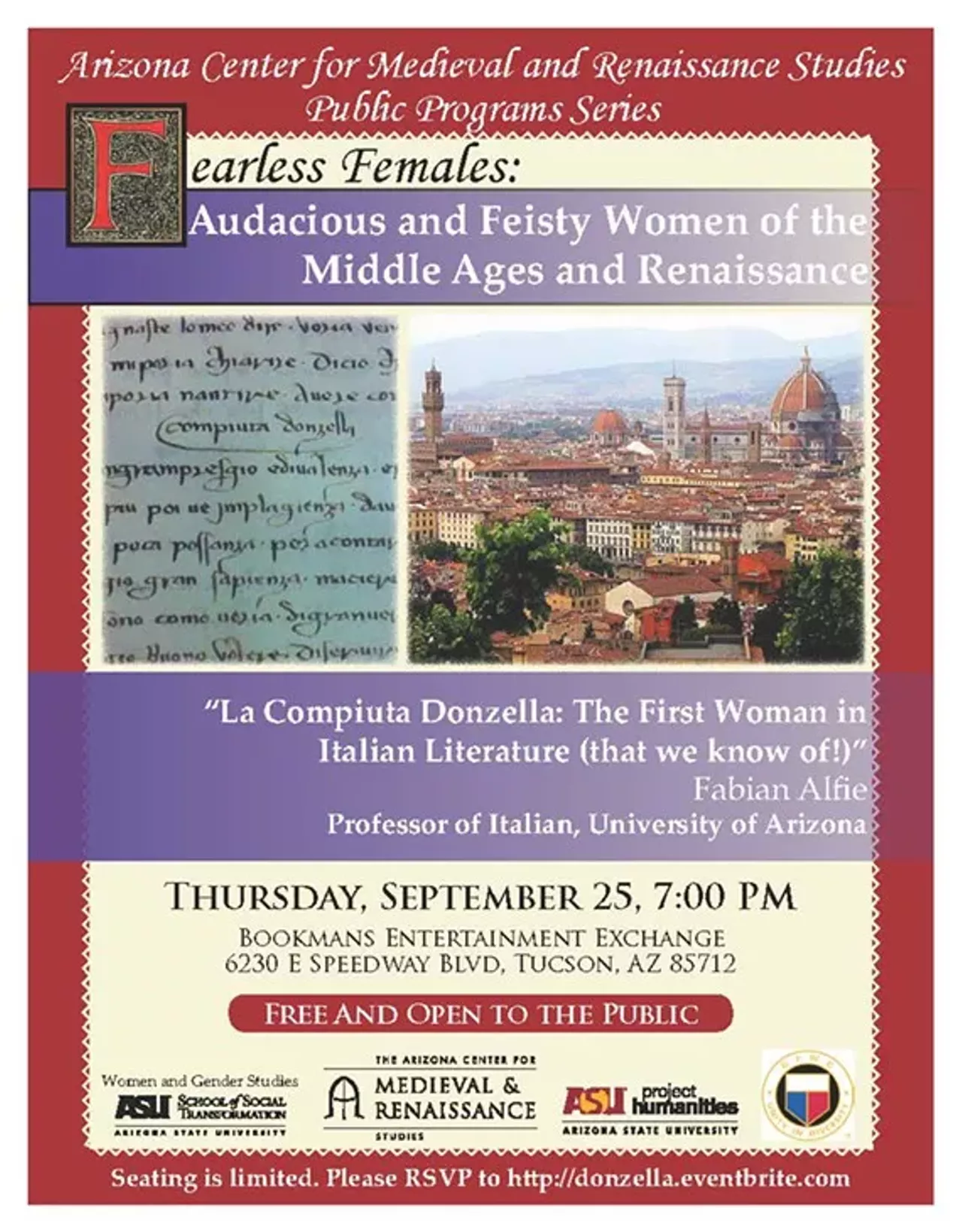 “La Compiuta Donzella: The First Woman in Italian Literature (that we know of!)” Presented by Fabian Alfie Professor of Italian, University of Arizona