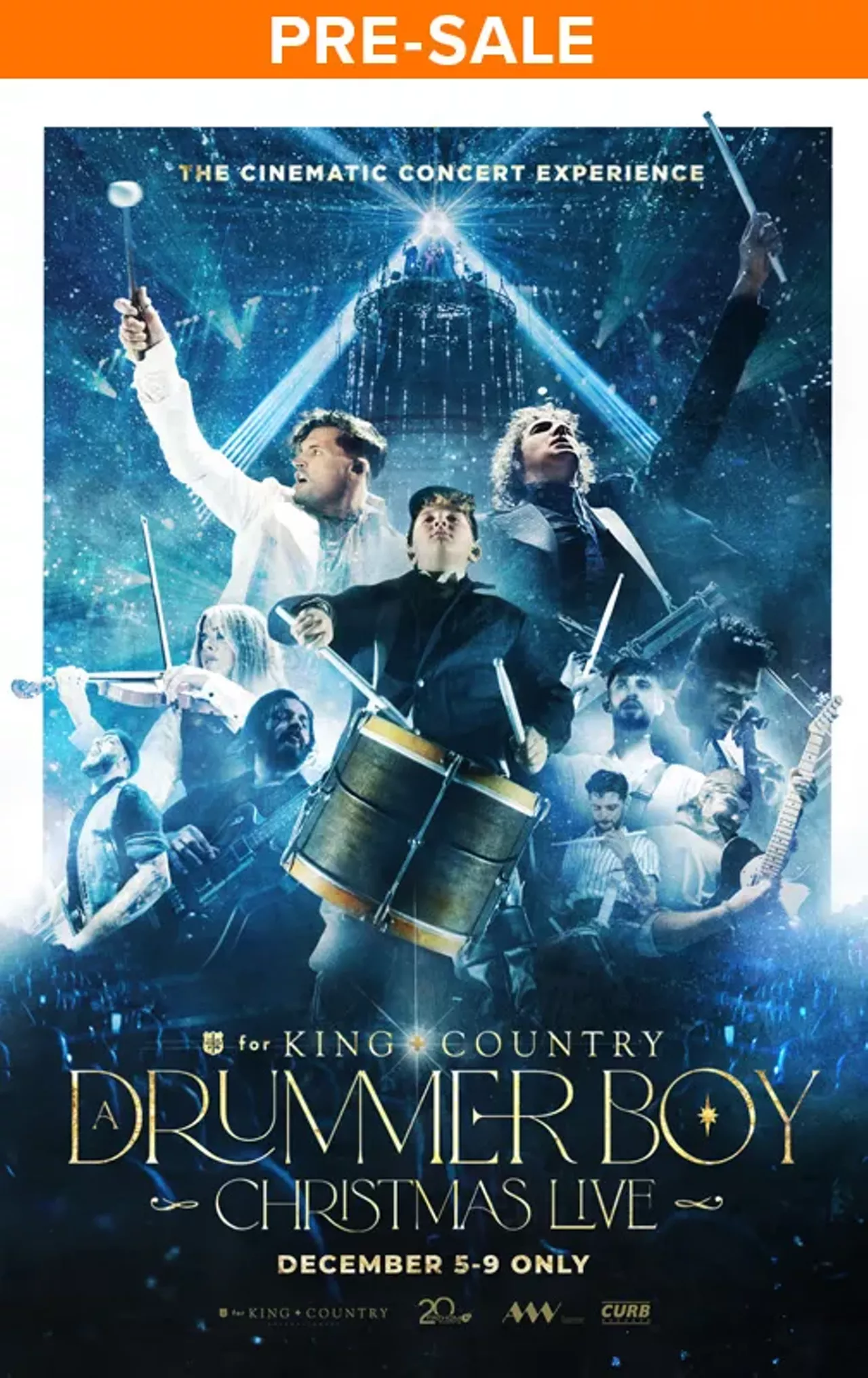 Embrace the most wonderful time of the year with the holiday event of the season – for KING + COUNTRY’s A Drummer Boy Christmas LIVE | The Cinematic Concert Experience!’ Step into the Christmas spirit like never before as 4x GRAMMY-award winning brothers Joel + Luke Smallbone lead audiences on a sonic journey that blends the sights and sounds of the season with the musical mastery, heartwarming storytelling, and dazzling production the duo is renowned for. Filmed during their largest ‘A Drummer Boy Christmas’ tour to date in front of a high energy, sold out arena crowd of 12,000+ in Houston, TX, the festive phenomenon features never-before-seen live performance footage and breathtaking views from A Drummer Boy Christmas. Experience the magic of the season in cinemas this winter.