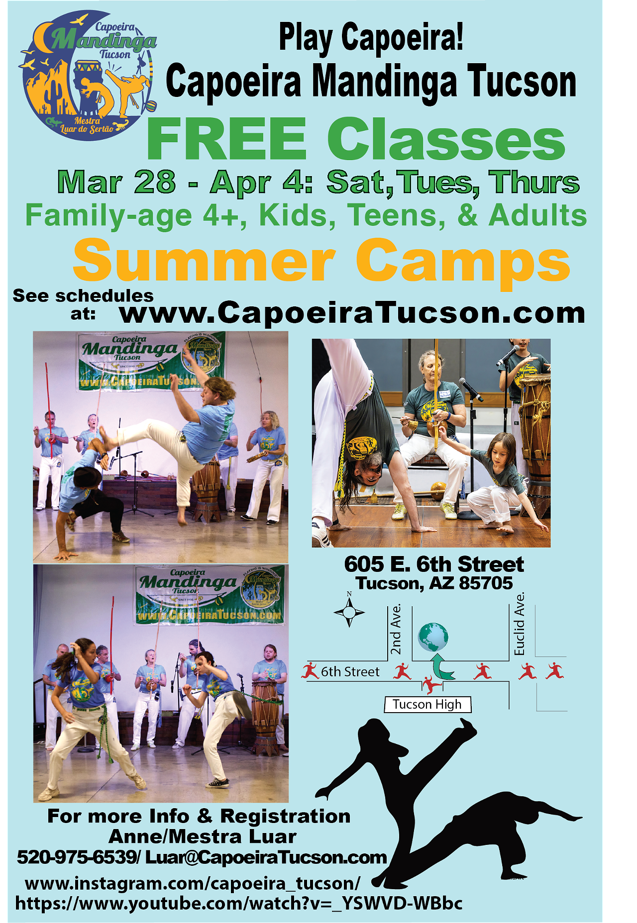 Come check out the Capoeira Mandinga Studio with free classes this week only! Family/kids/teens/adults - all are welcome. Visit our website for specific class times.