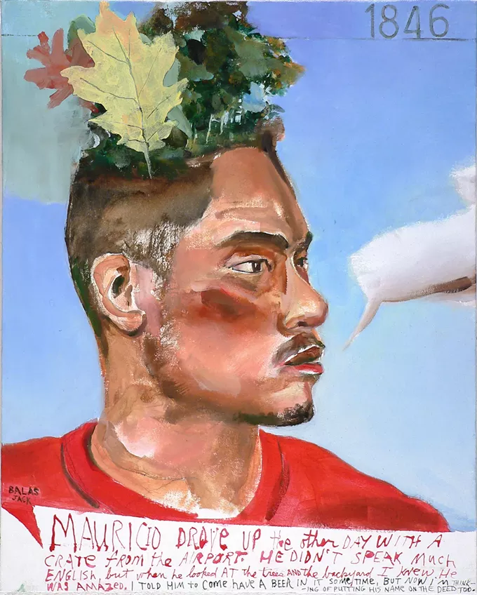 Jack Balas, Mauricio (#1846), 2019 oil and ink on canvas, 20 x 16 inches, Courtesy Etherton Gallery
