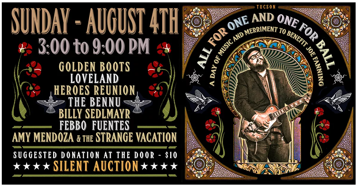 All for One and One for Ball: a cancer benefit for guitarist, luthier, and all-around great guy, Joe Fanning. Suggested donation: $10. Silent auction. Non-stop live music from Tucson's finest.