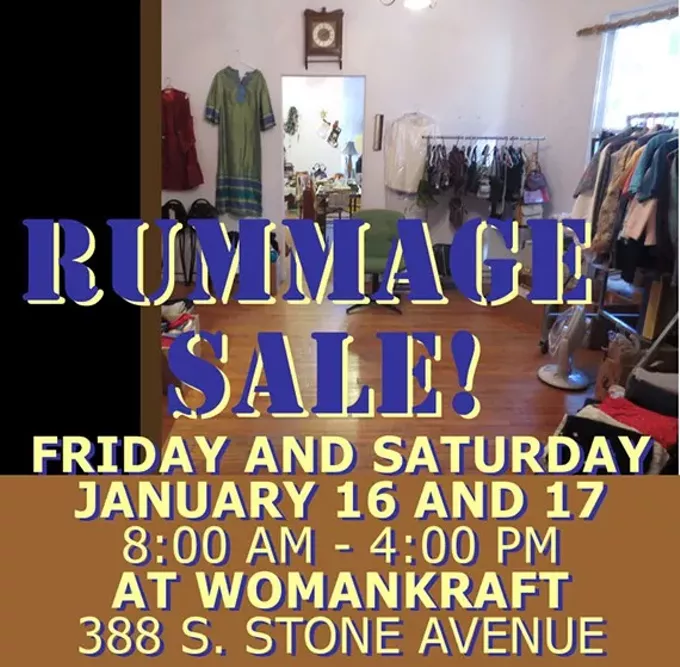 WomanKraft Art Center. 388 S. Stone Avenue. (520) 629-9976. Hosting 2 Day Indoor Rummage Sale. Great clean, working useful items for great prices! Friday and Saturday, Jan. 16 and 17, 8 A.M.–4 p.m. NO EARLY BIRDS. All proceeds go to towards maintenance and improvements at our non-profit art center.