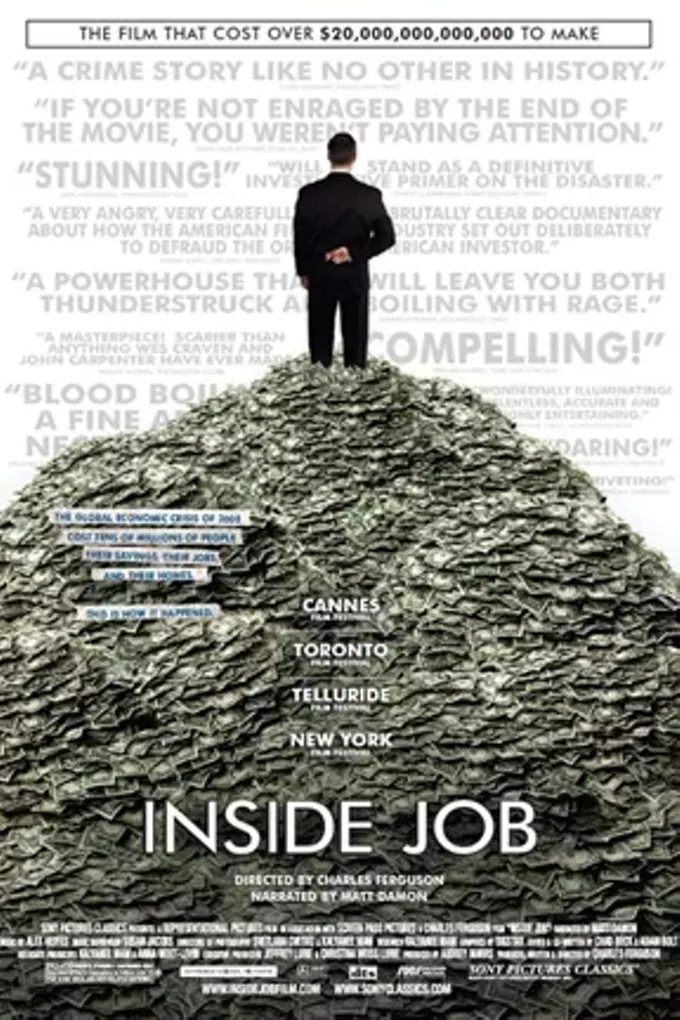 In analyzing the global economic meltdown in his new documentary, Charles Ferguson (who directed the equally impressive No End in Sight) does not come to the fight unarmed. He earned a political science doctorate from MIT, has consulted with the White House and the Department of Defense, and has served as a senior fellow at public-policy think tank the Brookings Institution. If there is another filmmaker alive more qualified to make this film, please let him or her step forward. His bona fides help explain Ferguson’s access to key players in and observers of the crisis—as well as his terse, confrontational manner while interviewing them. While it is difficult to watch this motion picture and not get inconsolably depressed, there is a catharsis when Ferguson attacks a stuffed shirt on his own battleground and wins, which he does frequently.