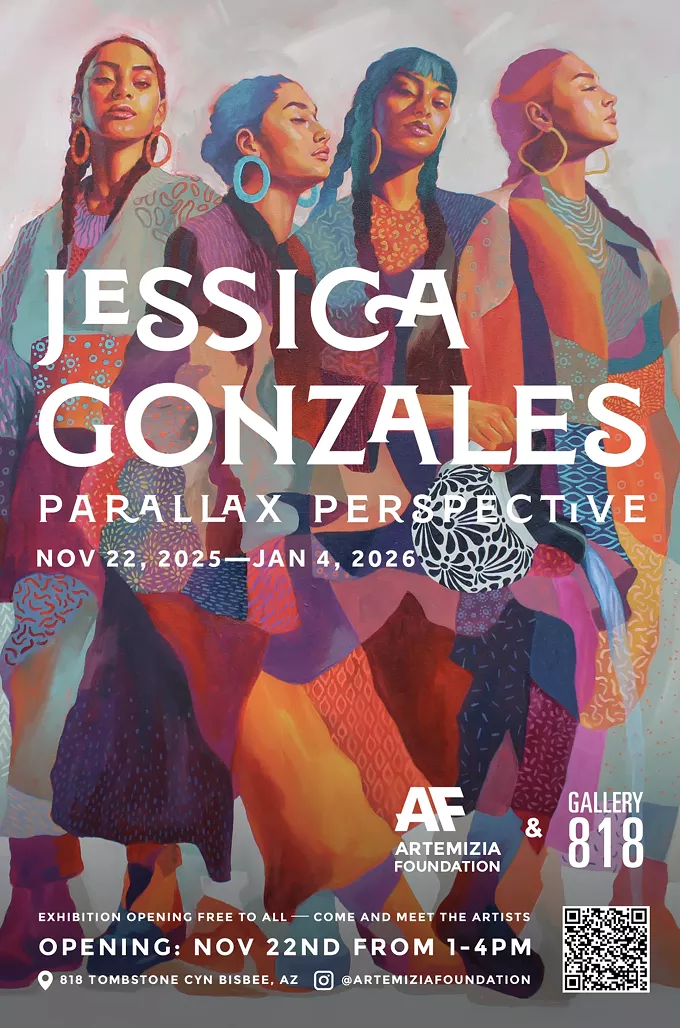 Join Tucson award winning artist Jessica Gonzales for “Parallax Perspective”, an immersive solo exhibition intertwining portraiture, abstract geometry & bold chromatic narratives to explore shifting identity and perception. Through 1/4/26