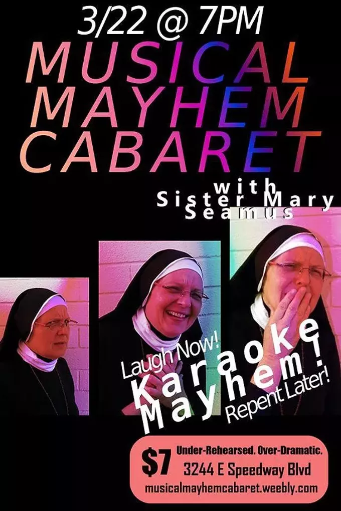 KARAOKE MAYHEM returns as Special guest host Sister Mary Seamus of Retro Game Show Night fame invites you to her local "karaoke bar" for a night of performances by Musical Mayhem Cabaret, an under rehearsed and over dramatic musical comedy troupe.