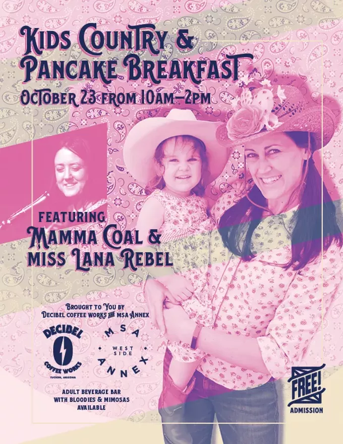 Decibel Coffee and MSA Annex present Kids Country & Pancake Breakfast. Pancake feed by Decibel, adult beverages by Westbound, music by Mamma Coal and Miss Lana Rebel. Free admission.