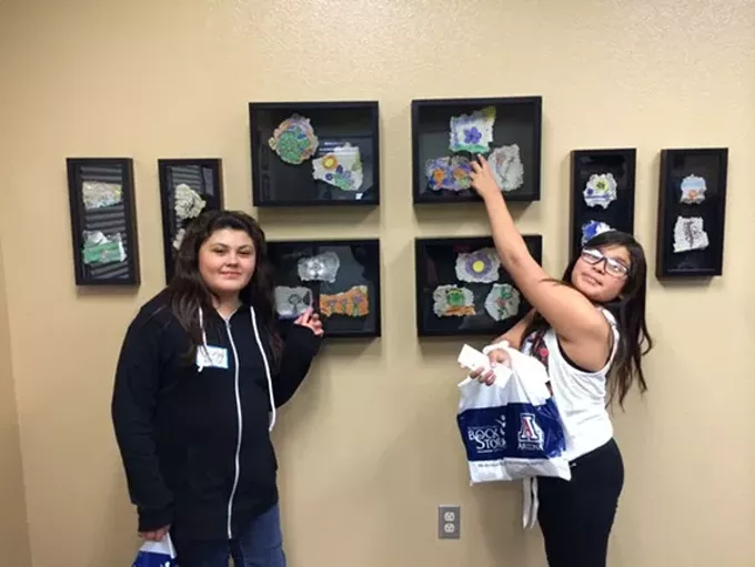 Artwork in various media by Manzo Elementary 4thgraders, integrating the fundamental concepts of Biosphere 2’s LEO (Landscape Evolution Observatory) through hands-on visual arts, science, writing experiences in their traditional classroom and their outside "science" classroom. Arts integration/writing/science projects linked B2 LEO research w/ art history, artists and culture.