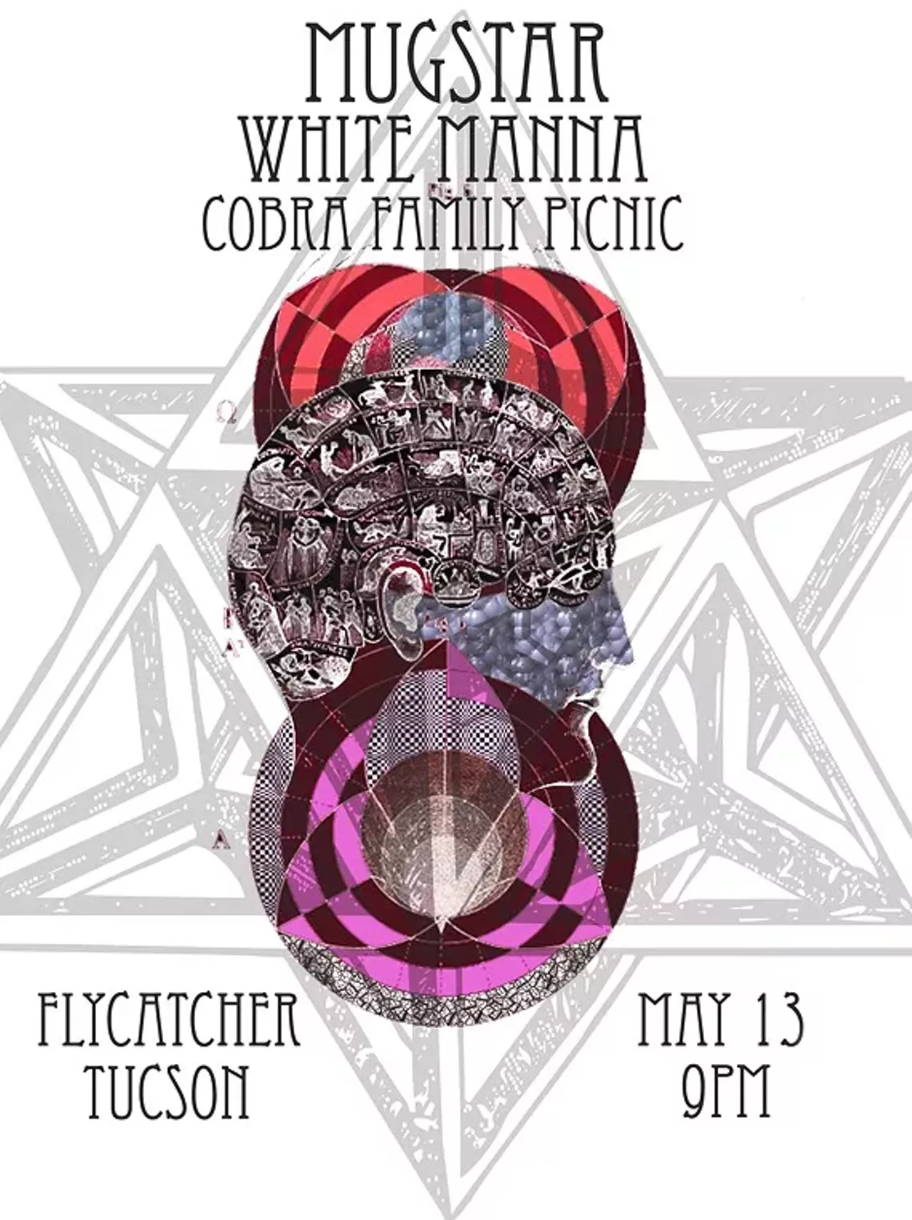 Mugstar - psych kraut band from Liverpool England headlines the show with their epic psychedelic instrumentalism. Joined are psych space rockers White Manna from northern California. Opening the show is local Cobra Family Picnic, Tucson's newest psychedelic noise space project.