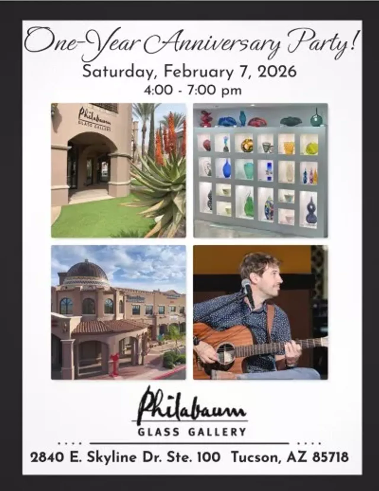 Celebrate Philabaum's one-year anniversary in a beautiful new location! Meet 4 featured artists from a new exhibition "The Luminous Form". Music by Ben Tully Music.