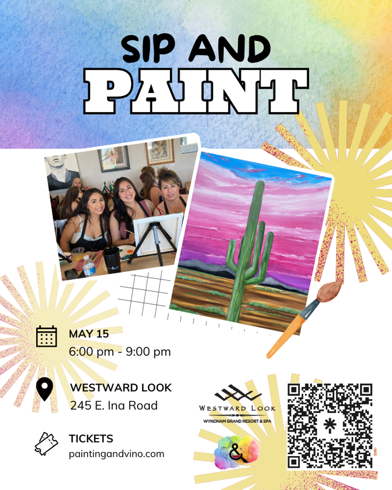 Join us for delicious eats and drinks paired with beginner art at Westward Look! Get ready for a creative, fun-filled night of socializing at this “Pink Sunset” paint and sip!