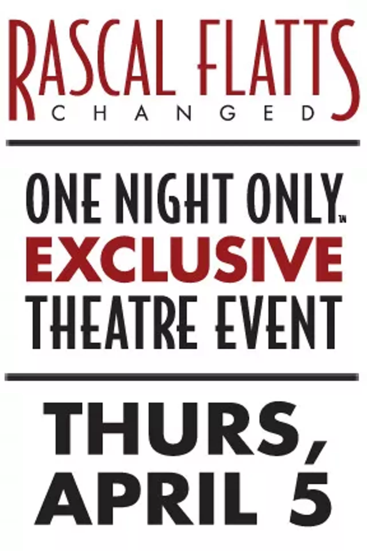 Rascal Flatts: Changed is not showing in any theaters in the area.