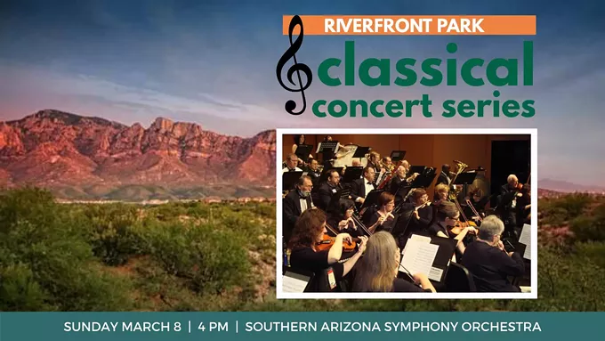 The Southern Arizona Symphony Orchestra will perform at the Riverfront Park Classical Concert on March 8 at 4:00 PM.