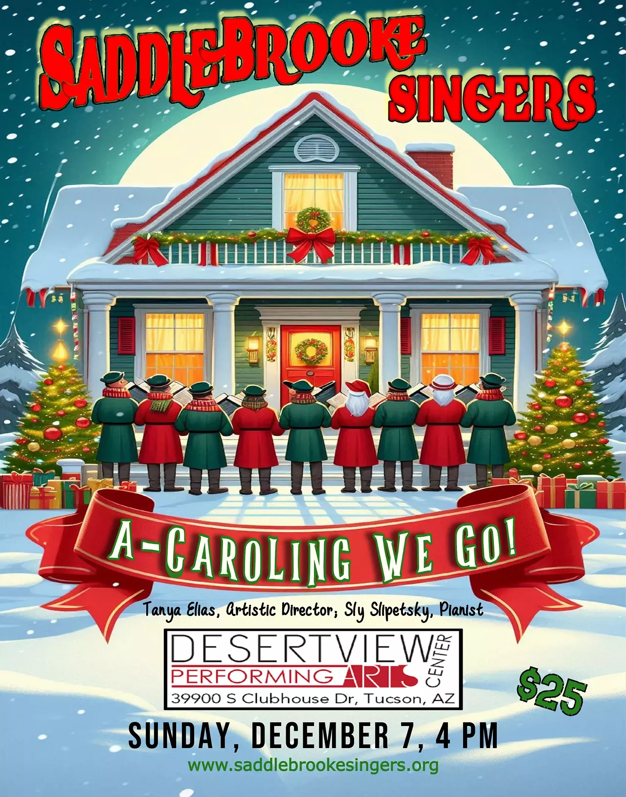 This holiday season, the SaddleBrooke Singers present A-Caroling We Go!, a festive journey that follows a group of carolers bringing music from porch to porch. Featuring Sly Slipetsky on piano.
