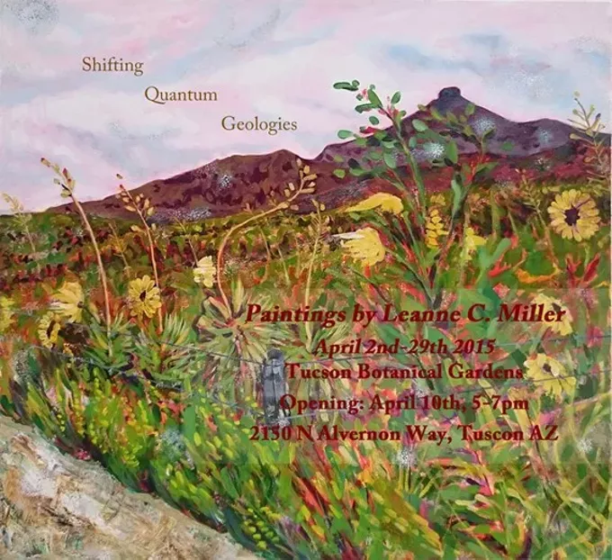 The Porter Hall Gallery located in the Tucson Botanical Gardens presents, "Shifting Quantum Geologies", paintings by 2015 MFA candidate, Leanne C. Miller. Her works will be on display April 2nd- April 29th, 2015, Reception Friday April 10th, 5-7 pm, event is free, refreshments will be served.
