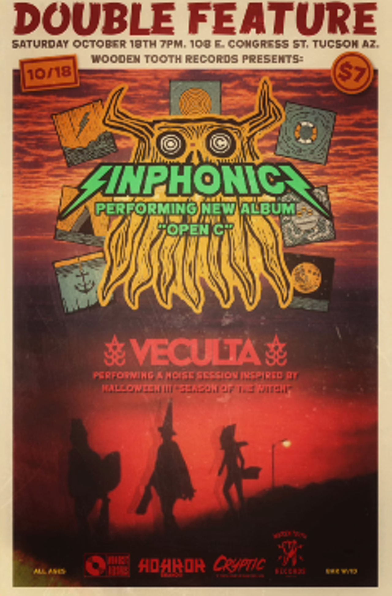 Local metal band Sinphonics celebrate the release of their new album, Open C, with support from Veculta, performing a noise session inspired by Halloween III. All ages, bar with ID