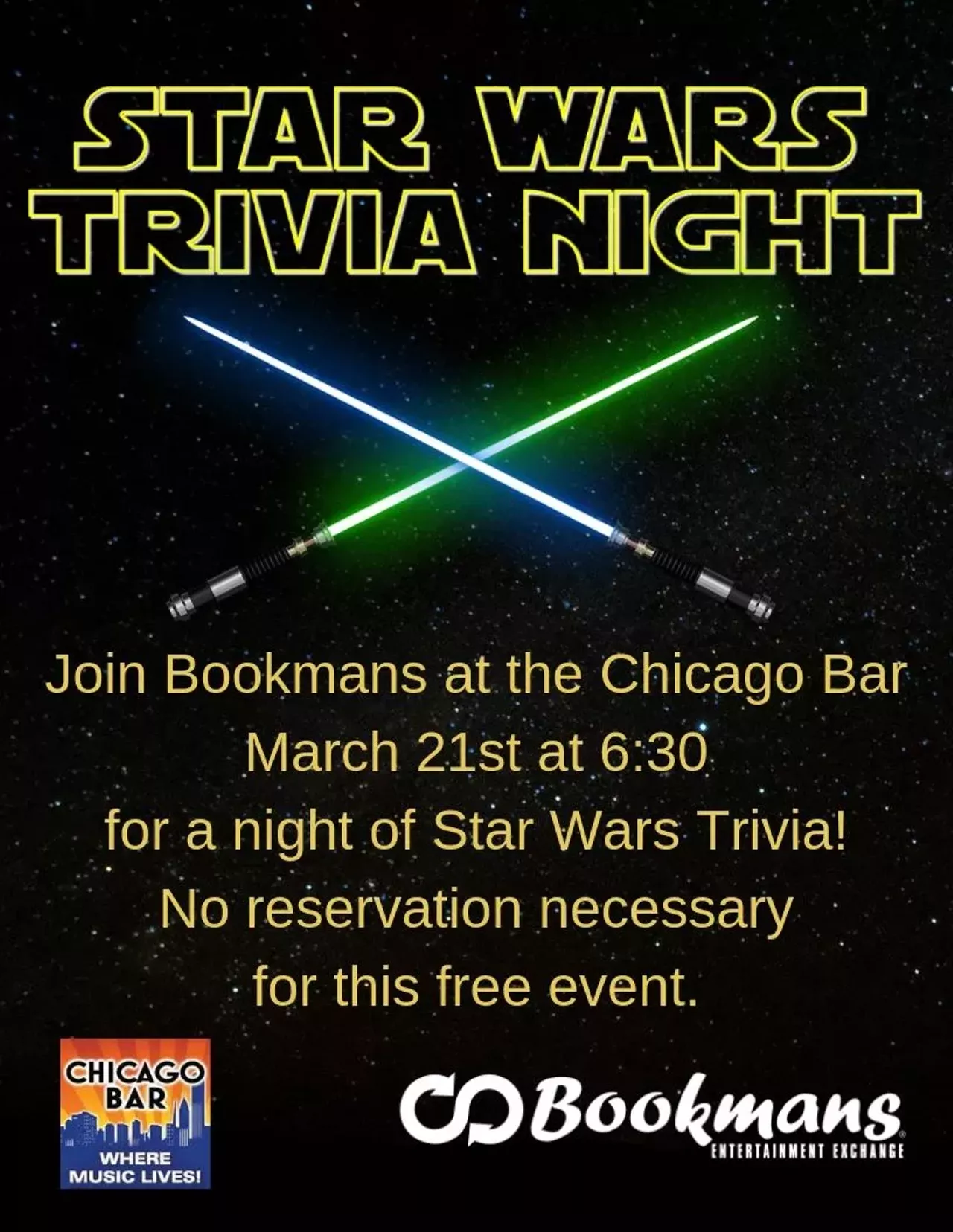 Join Bookman's at the Chicago Bar for a night of Star Wars Trivia! No reservations necessary. Free event