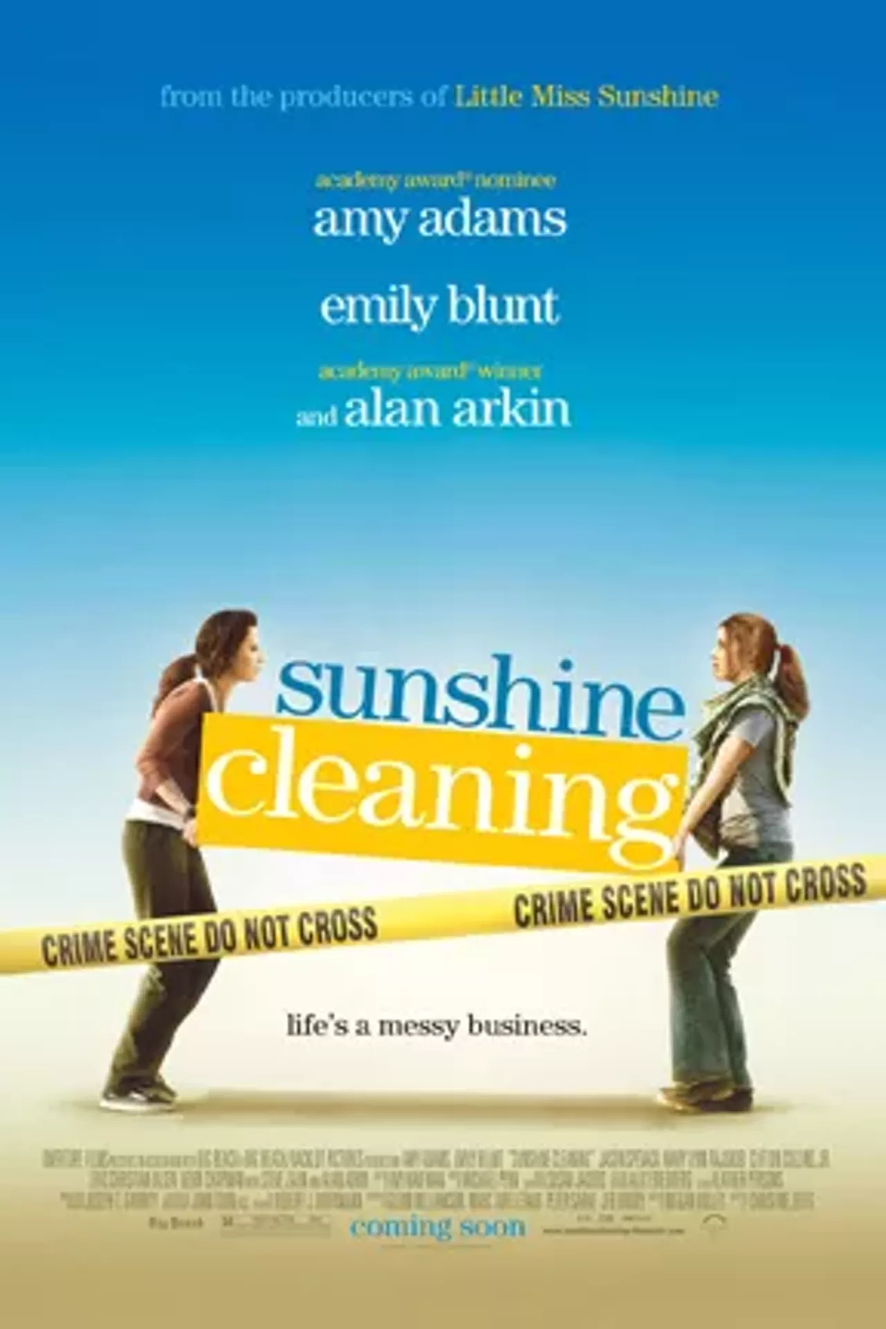 This would be the perfect indie comedy if it didnt suddenly get all sentimental in the end. Even worse, the final five minutes are just a wish-fulfillment sequence which rivals the lamest of the 1980s happy-ending filmmaking. But up until then, this is a pretty effective story about a deeply flawed woman (Amy Adams, who, frankly, will never be a great actress but will always be adored by critics because she has the kind of jolie laide looks that caused them to bestow endless honors on Meryl Streep), her even more messed-up sister (Emily Blunt), their scheming father (Alan Arkin, who now has a niche) and etc. There are some affairs, some high-school-girls-getting-their-revenge-on-the-ex-cheerleader, some semi-naked stuff featuring Adams and Steve Zahn (cant she do better?) and a story about being second-rate in Albuquerque and starting up a business to clean up the mess left by dead bodies and the love and tenderness that such things produce. Also, there is a really nice turn by Mary Lynn Rajskub as a lesbian phlebotomist, which is nice, because, outside of the Die Hard series, very few movies feature heroic lesbian phlebotomists.