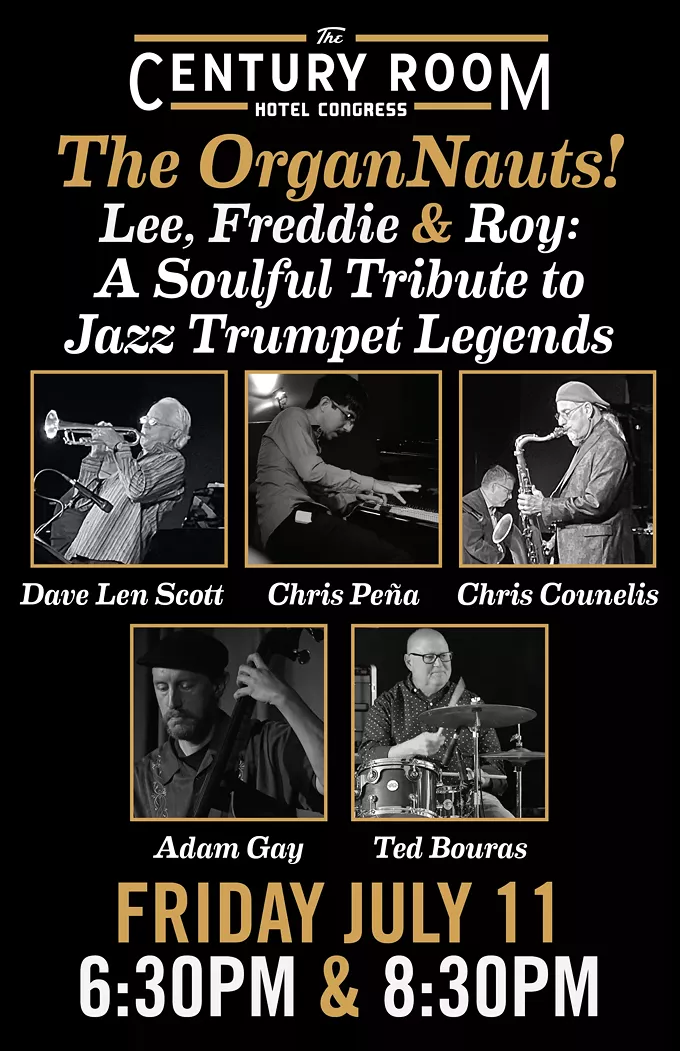 The OrganNauts are bringing their soulful tribute to Lee Morgan, Freddie Hubbard and Roy Hargrove. They'll fill the Century Room with the groove and gospel-tinged swing that defined these artists.