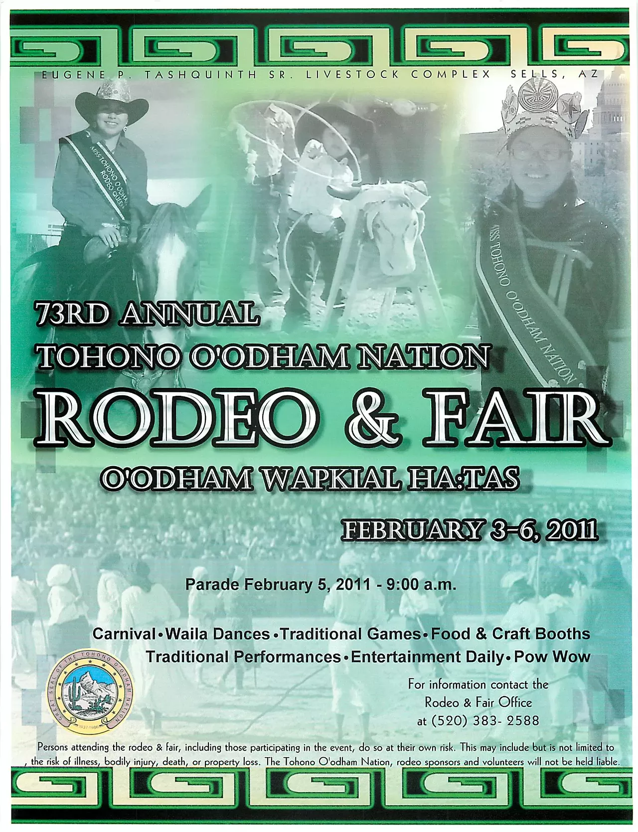 carnival, waila dances, traditional games, food and craft booths, traditional performances and entertainment daily, takes place Thursday, February 3 through Sunday, Feb. 6. A parade takes place at 9 a.m., Saturday, Feb. 5. Call (520)383-2588 for more information.