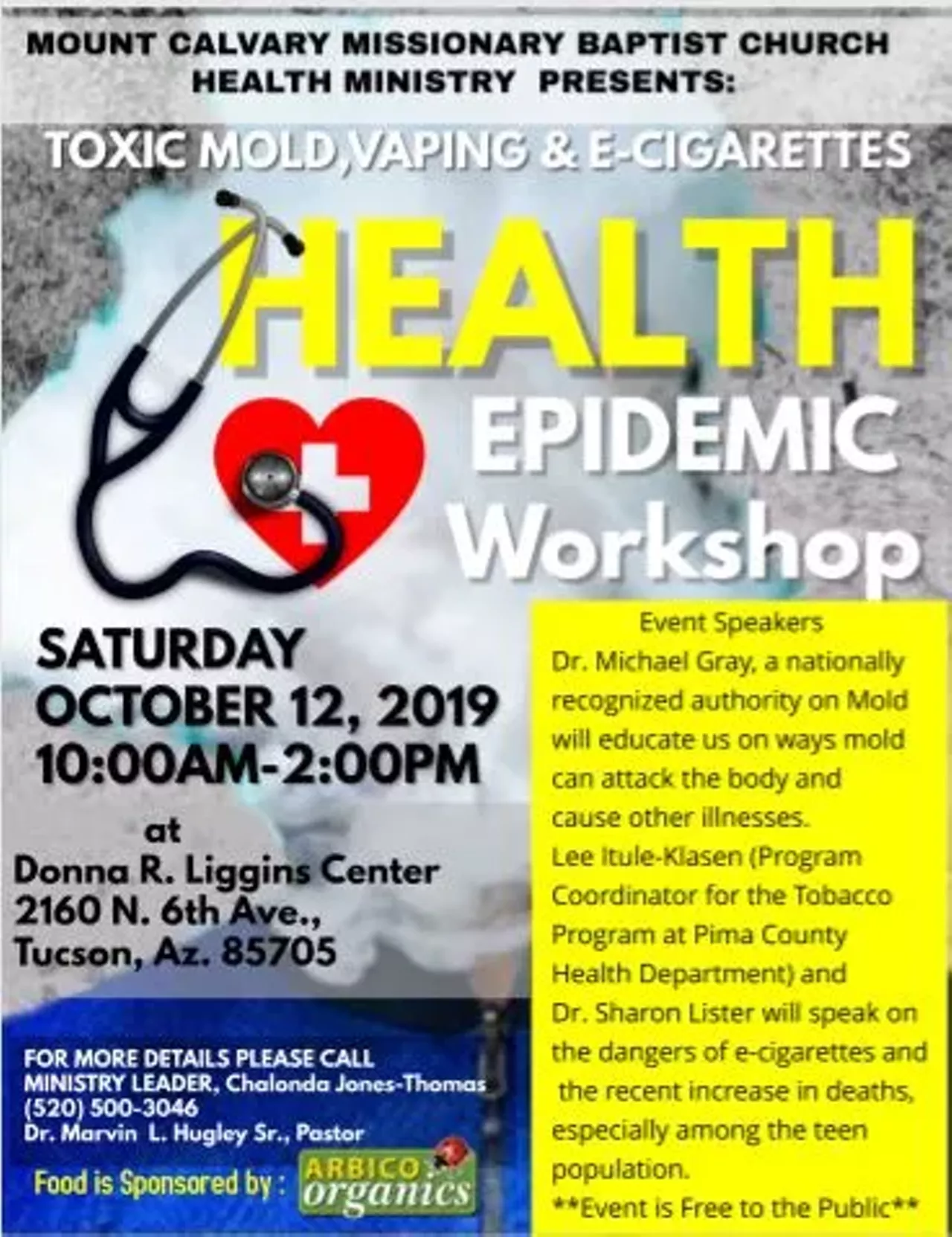 Experts will speak on Toxic Mold, Vaping, and E-cigarettes. This workshop is free and will include demonstrations, testimonials, Q&A, and food. Open to the public. Parents bring your teens.