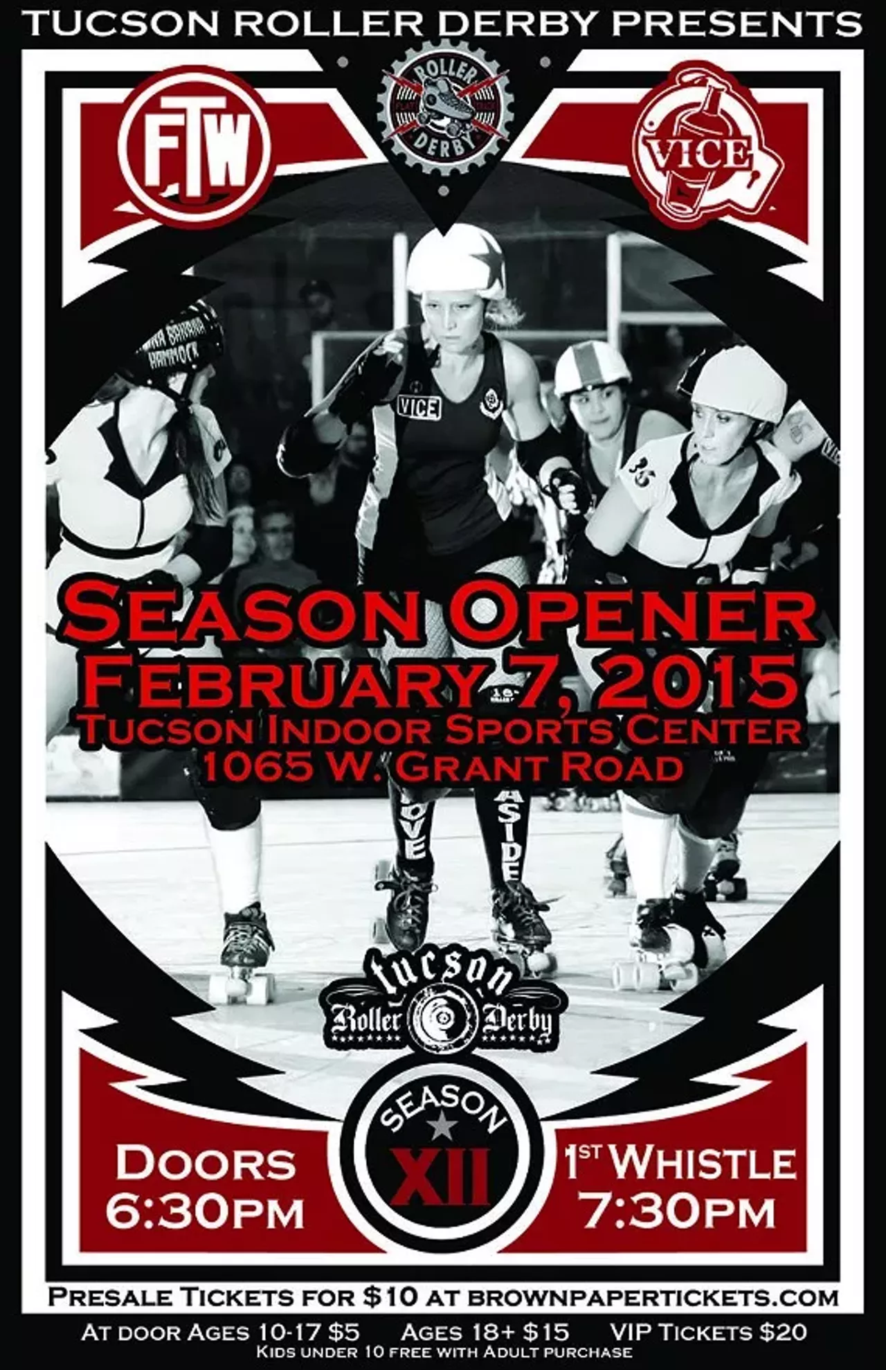 Tucson’s rollergirls are back for their twelfth season! Come see our newest talent and your favorite vets in our first home bout of 2015 as home teams VICE Squad and Furious Truckstop Waitresses battle it out. It’s not a sport; it’s a lifestyle. Food and drink available.